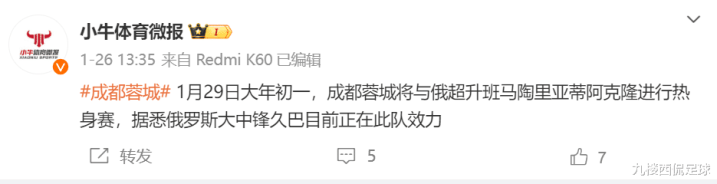 这次的冬训终了后,成王人蓉城在大年月朔链接进行热身赛,这次热身的敌手来自于俄超升班马阿克伦托格里蒂。